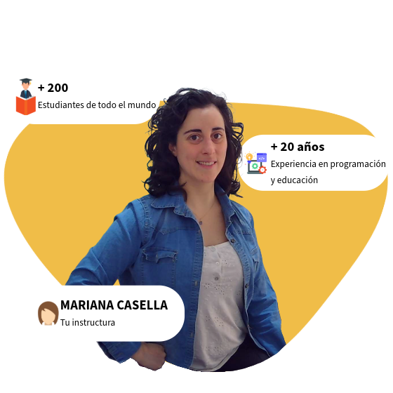 Mariana Casella es una programadora backend con más de 10 años de experiencia en la industria tecnológica. En 2024, ha formado a más de 100 programadores, guiándolos desde los conceptos fundamentales hasta su integración en el mundo laboral. Mariana combina su pasión por la enseñanza con su experiencia en liderazgo y gestión de equipos, lo que le permite brindar un enfoque práctico y realista en sus cursos. Su metodología está diseñada para ayudar a los estudiantes no solo a adquirir habilidades técnicas, sino también a desarrollar las competencias necesarias para tener éxito en el entorno profesional y empresarial.